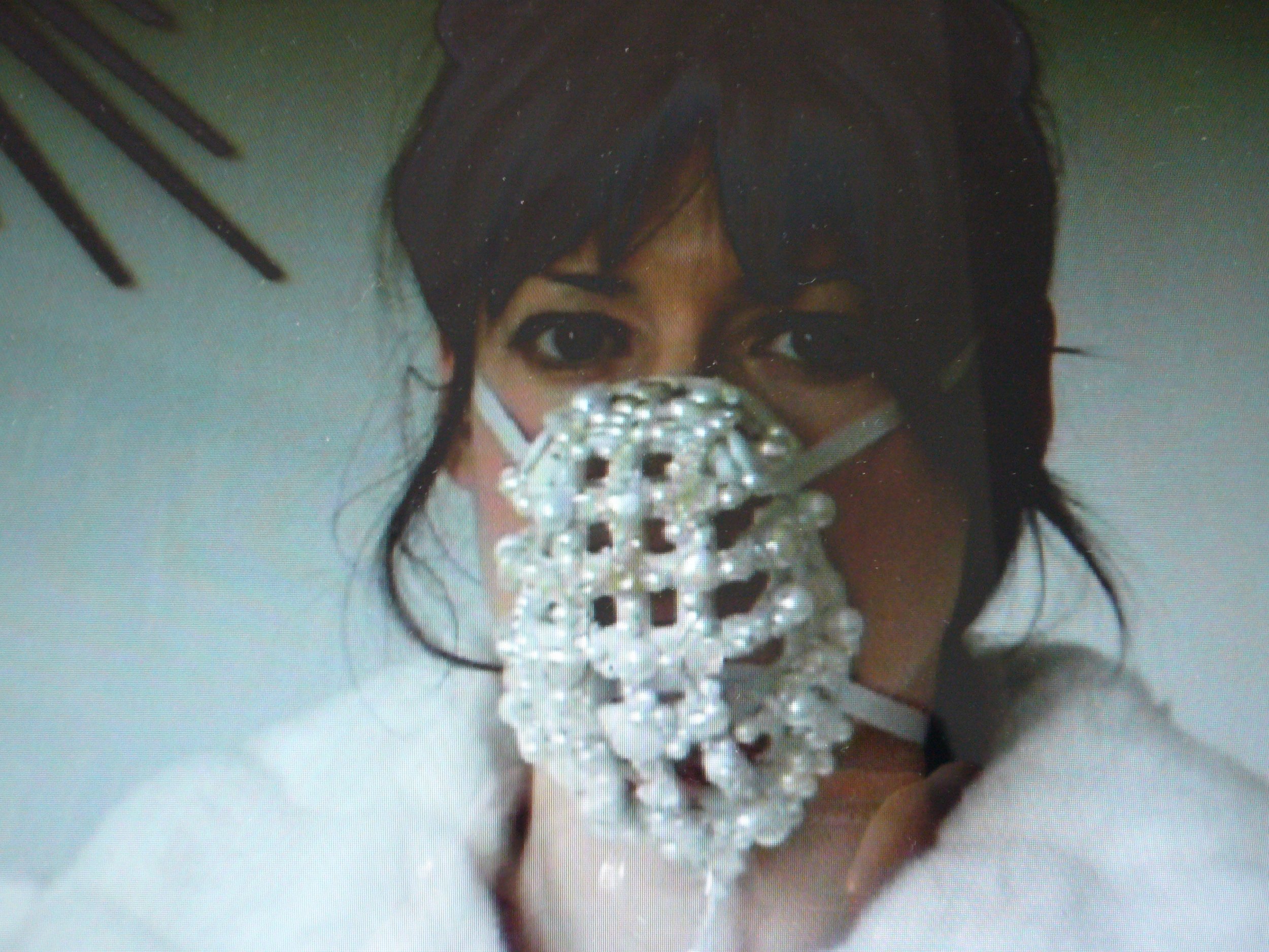 Digital stills of performance with performer wearing customised dog muzzle
