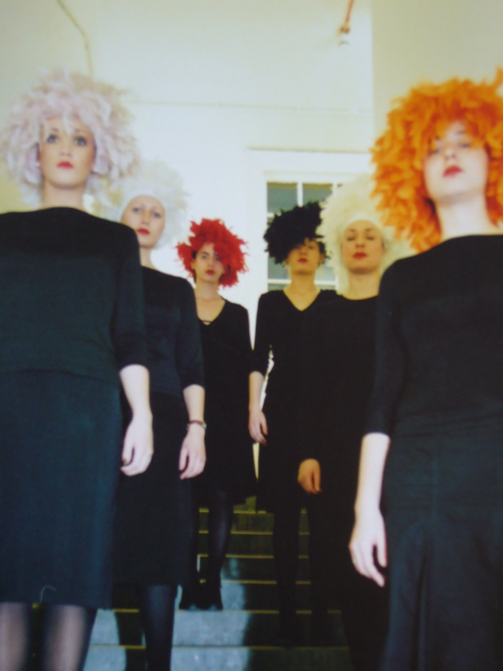 Featherheads, 2006Digital stills of performance with 6 performers in handmade headwear incorporating sound