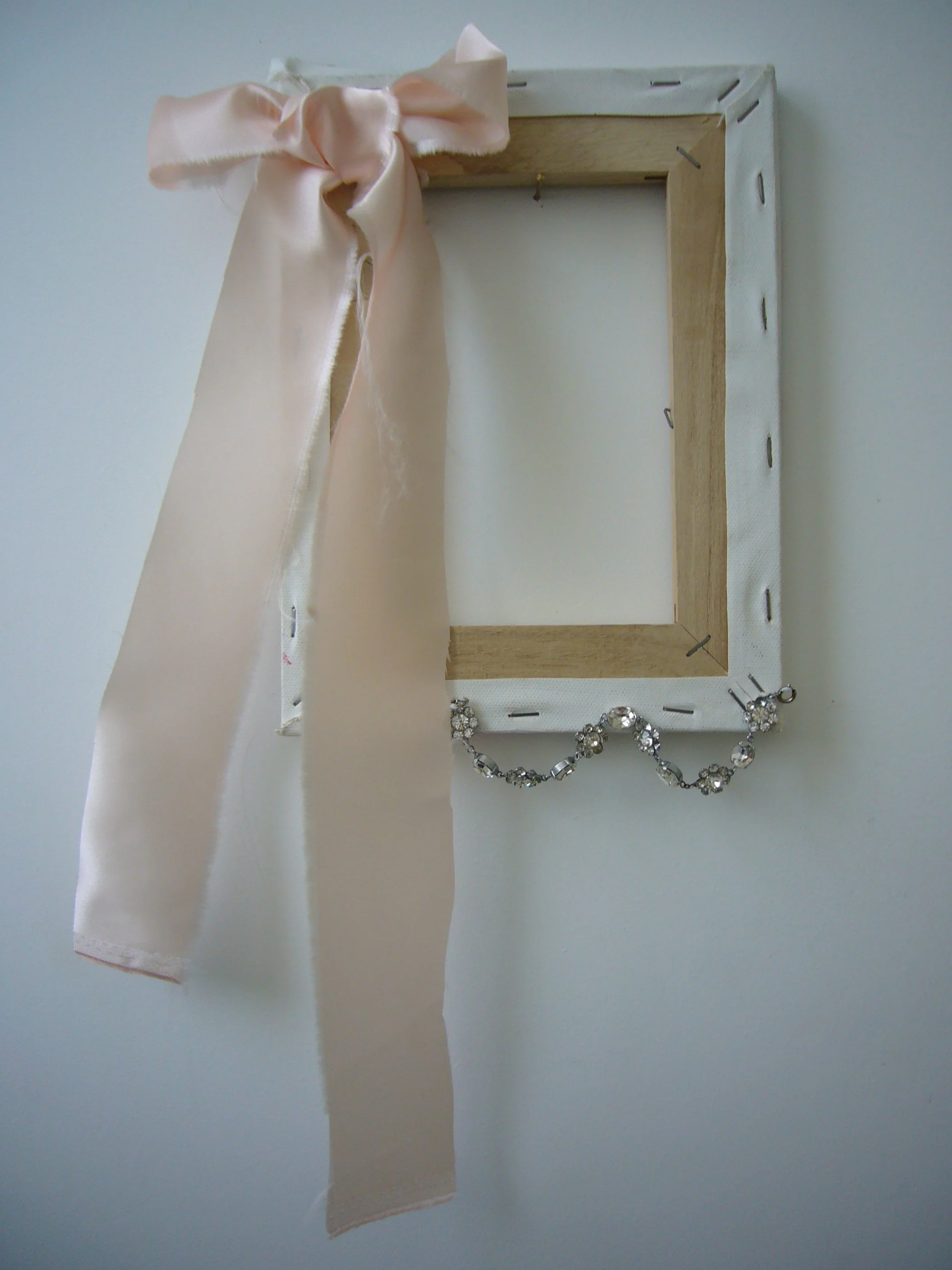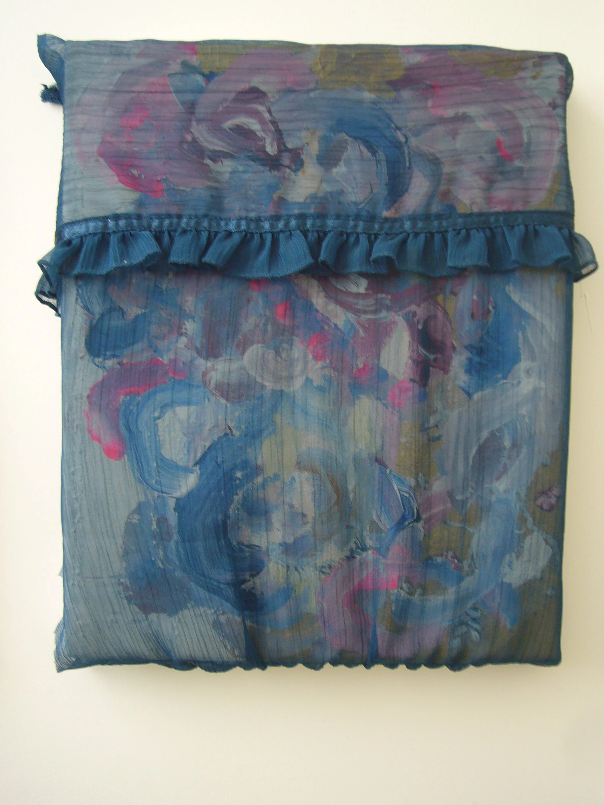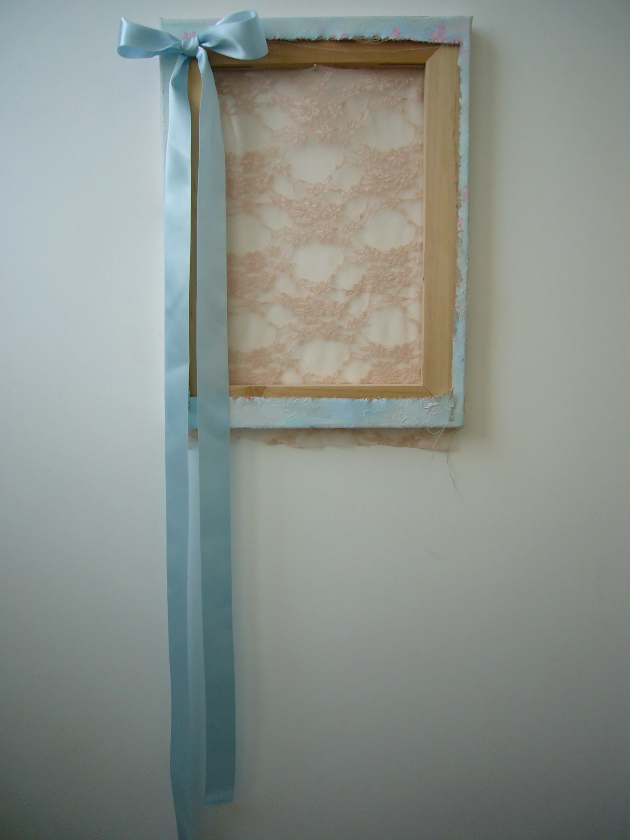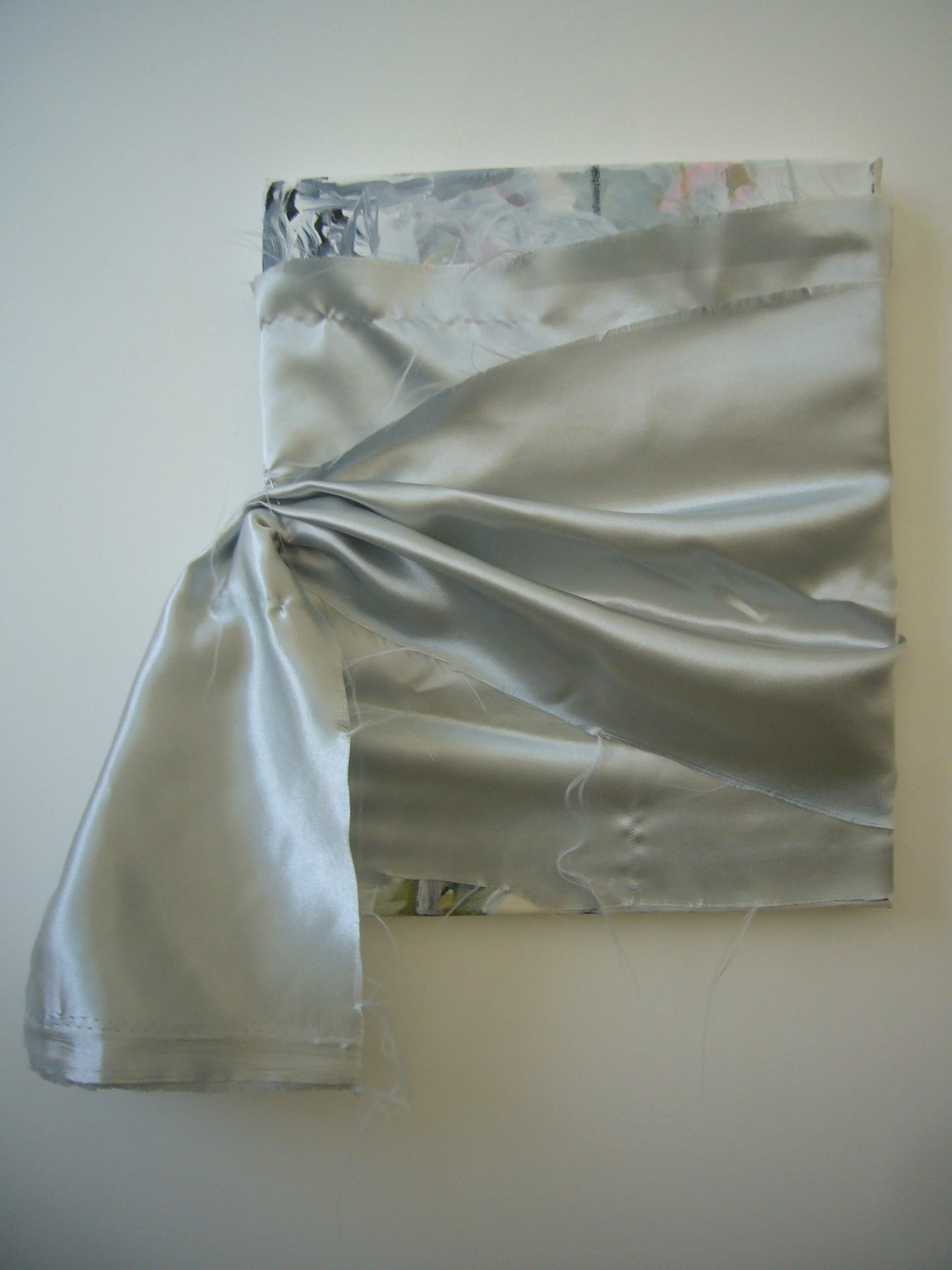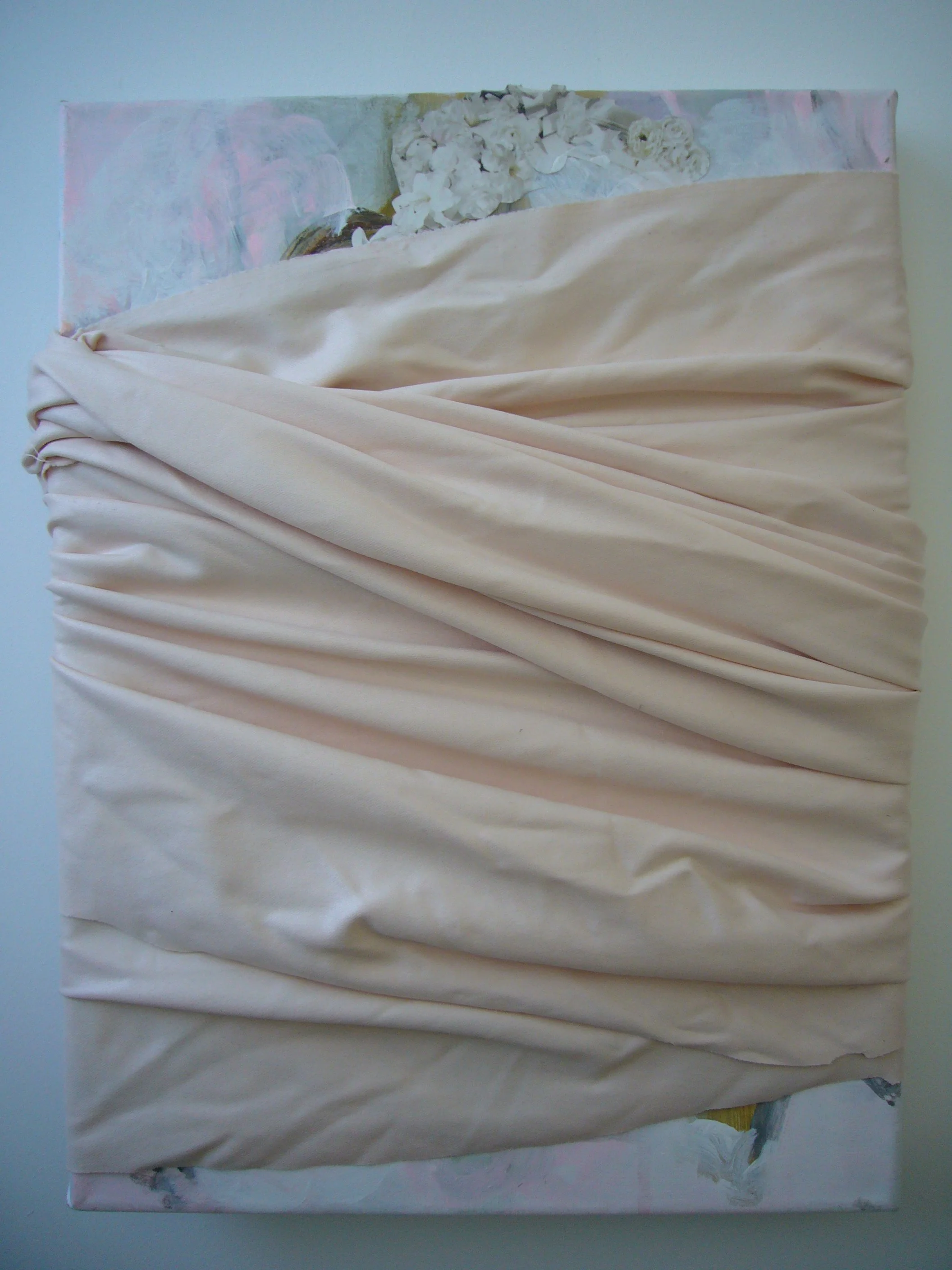 Acrylic, fabric, ribbons, found objects on canvas, various dimensions