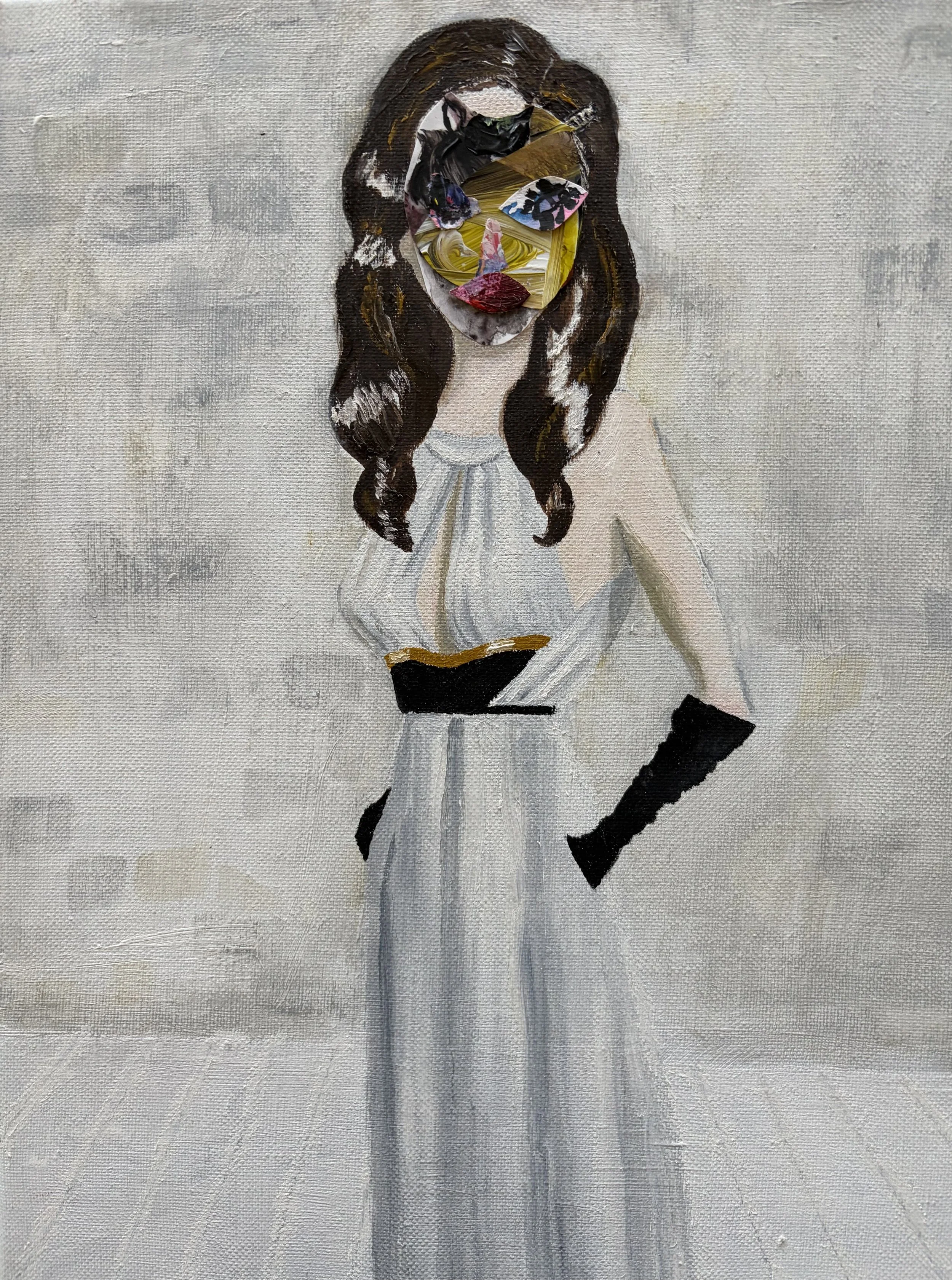 Oil and acrylic collage on linen, 40.5×30cm